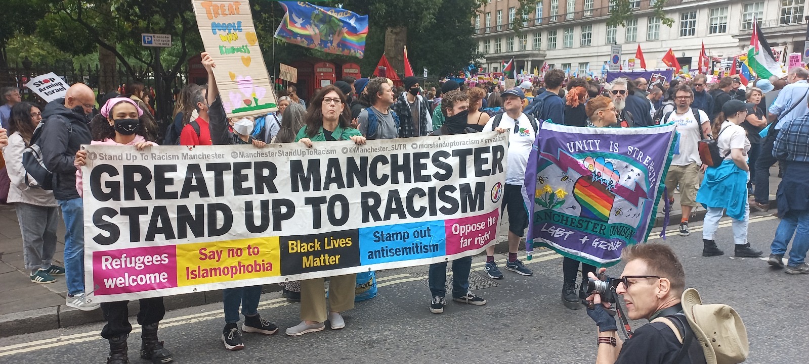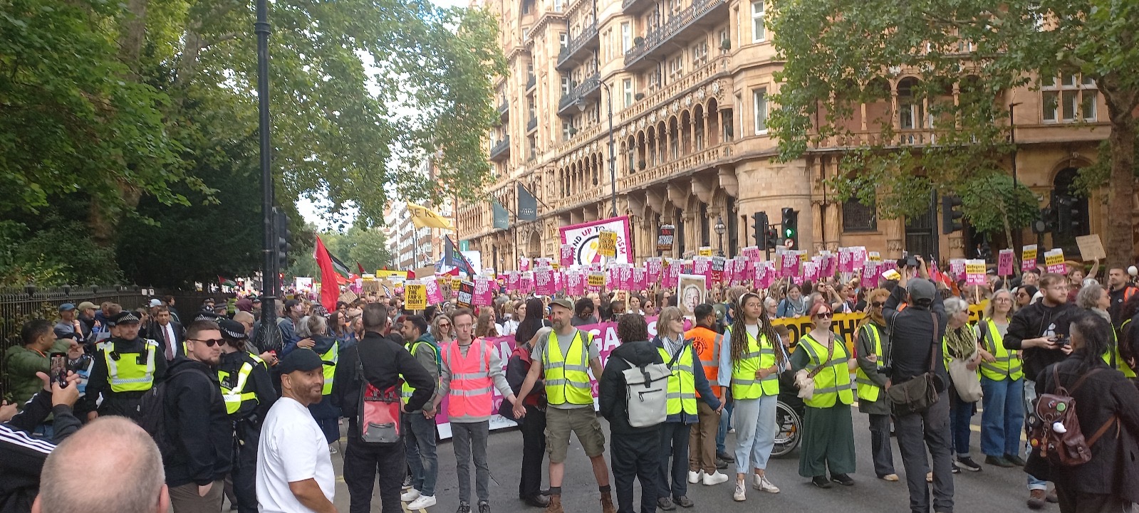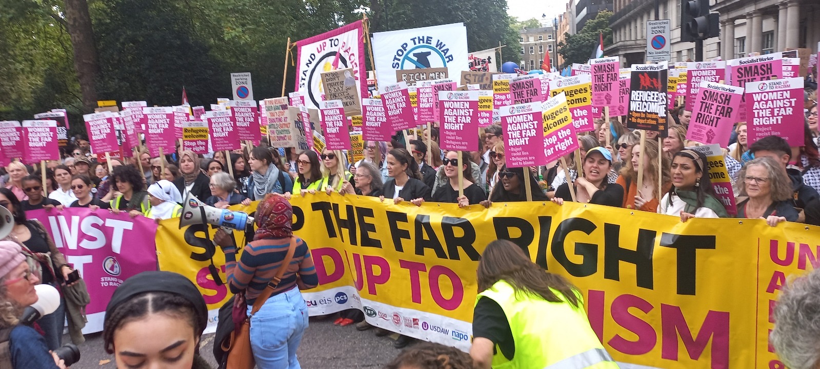 While SUTR reported around 20,000 counter demonstrators, police sources estimated that the far right “Unite the Kingdom” march drew up to 100,000 participants. Although heavily outnumbered, the counter demonstration sent a clear and defiant message of anti-racist solidarity and resistance.