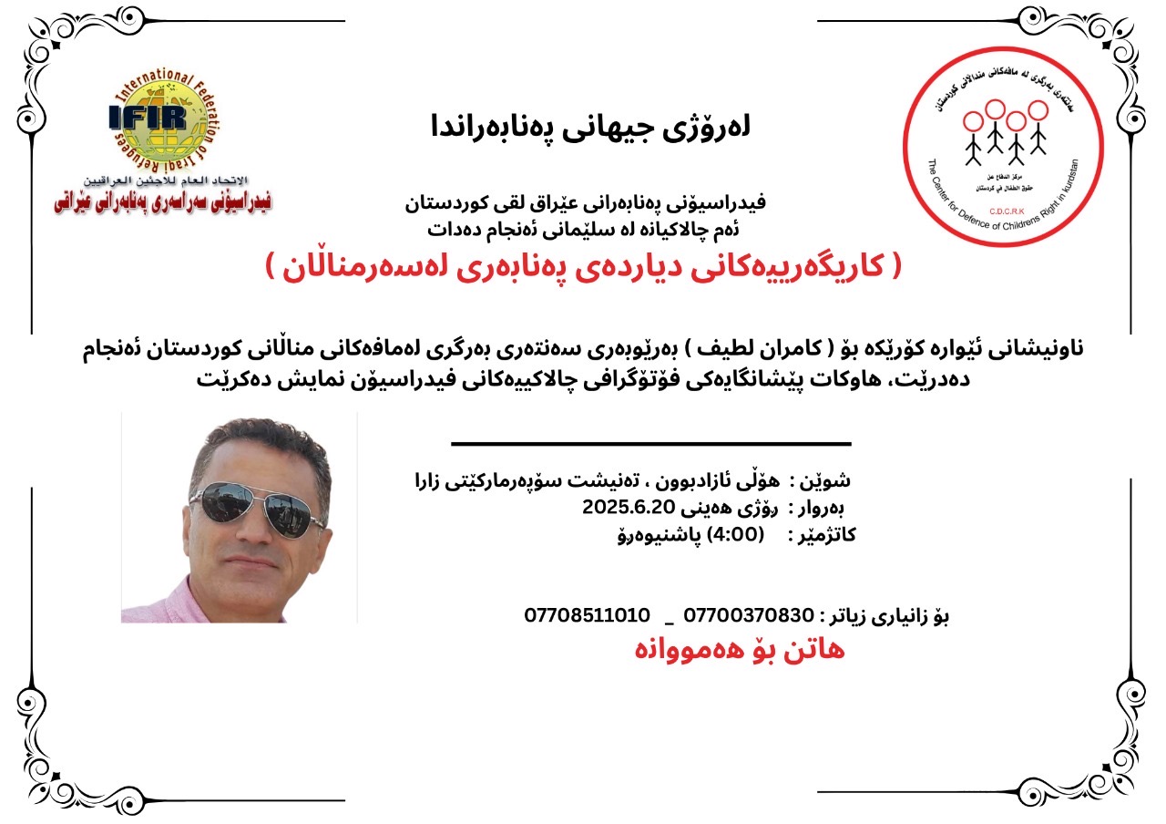لەرۆژی جیهانی پەنابەراندا فیدراسیۆن ئەم چالاکیانە لە سلێمانی ڕێک دەخات:
